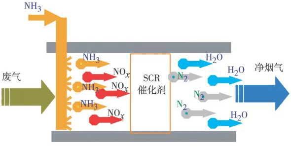 SCR脫硝技術(shù)化學(xué)反應(yīng)示意圖