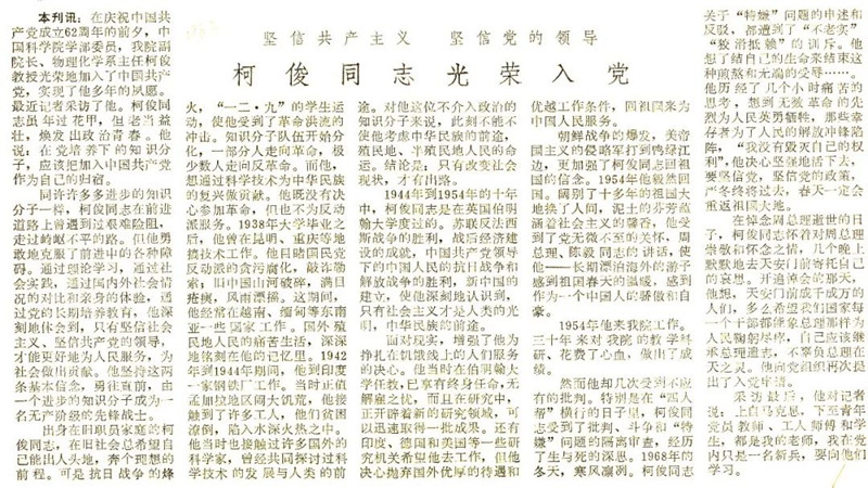 回國后的六十多年里,柯俊始終銘記著當(dāng)初的誓言,投身教育科研,科教興國,助力著祖國的崛起。