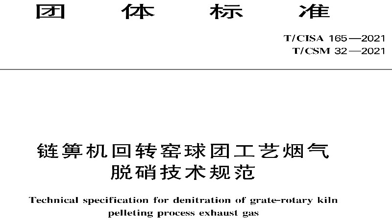 我司參編的《鏈篦機(jī)回轉(zhuǎn)窯球團(tuán)工藝煙氣脫硝技術(shù)規(guī)范》團(tuán)體標(biāo)準(zhǔn)正式發(fā)布實(shí)施!