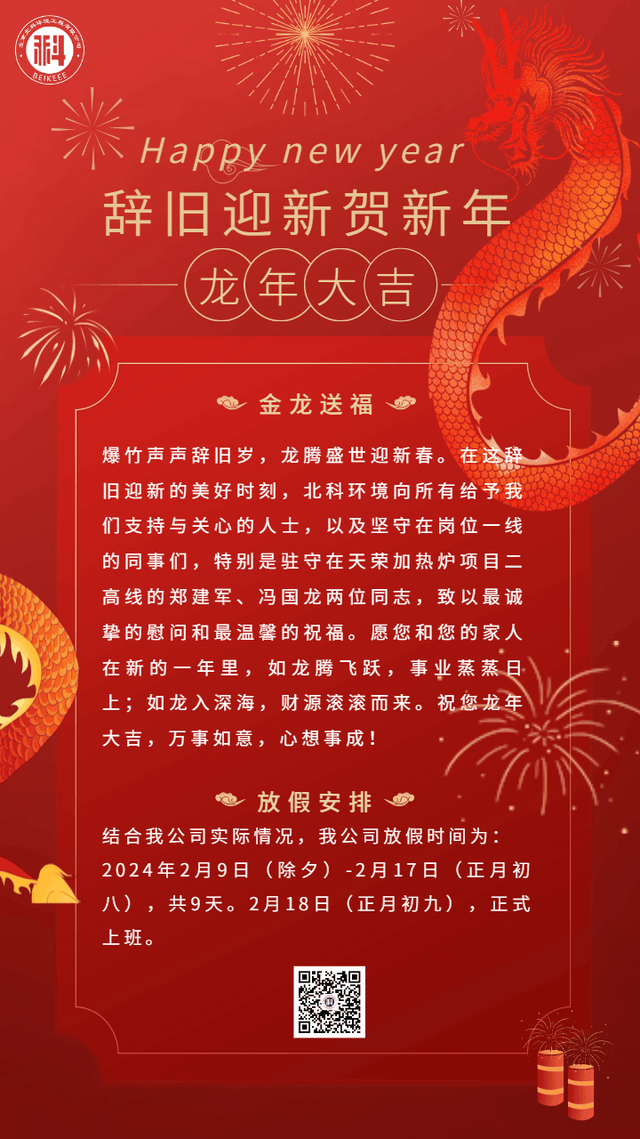辭舊迎新賀新年,北科環(huán)境祝您龍年大吉