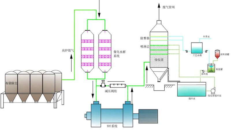 上圖:BKRP高爐煤氣精脫硫工藝流程圖